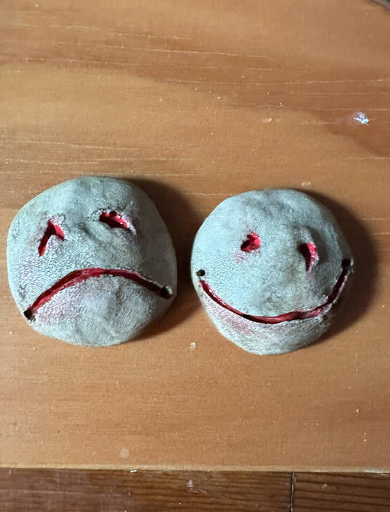 Polymer clay sculpted faces.